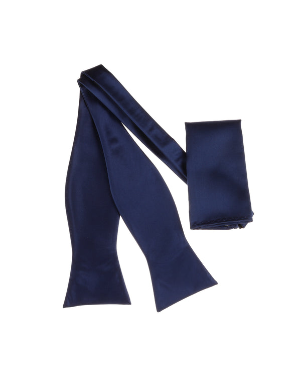 Dark Sapphire Blue Satin Finish Self-Tie Bow Tie With Matching Pocket Square SSTBT-201