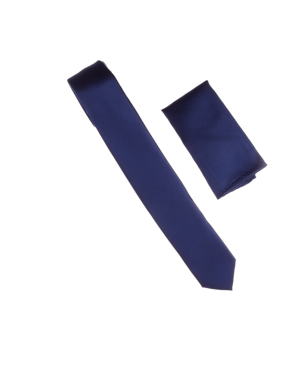 Dark Sapphire Blue Satin Finish Silk Skinny Necktie with Matching Pocket Square 2.5" Width SSKT-201