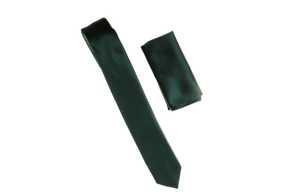 Gem Green Satin Finish Silk Skinny Necktie with Matching Pocket Square 2.5" Width SSKT-244