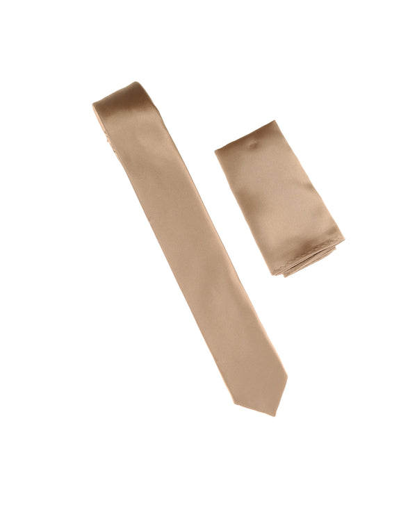 Gold Metallic Satin Finish Silk Skinny Necktie with Matching Pocket Square 2.5" Width SSKT-232