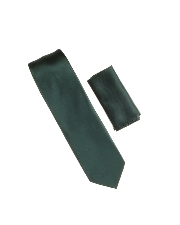 Gem Green Satin Finish Extra Long Necktie with Matching Pocket Square
