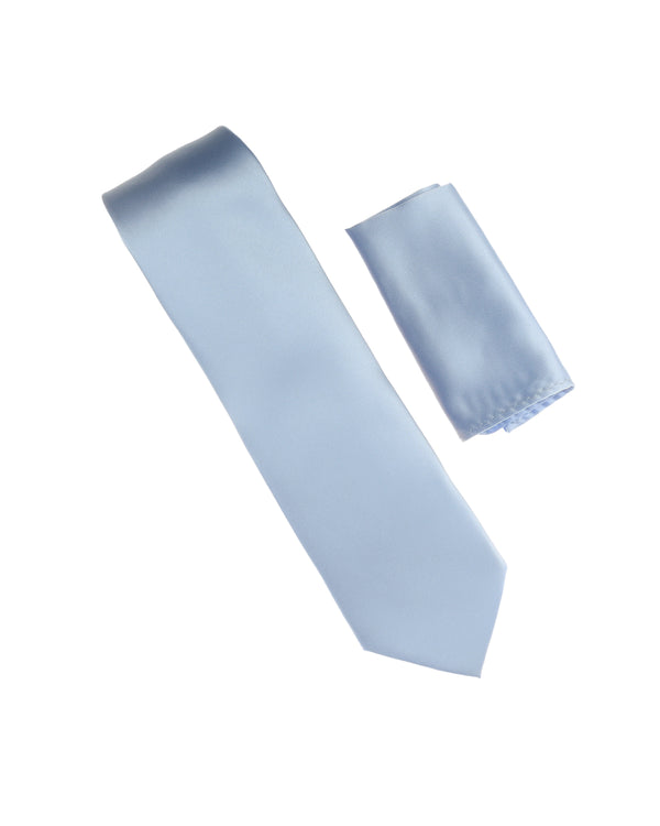 Ice Blue Satin Finish Silk Necktie with Matching Pocket Square SWTH-240