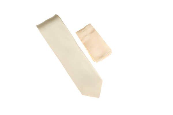 Ivory Satin Finish Silk Necktie with Matching Pocket Square