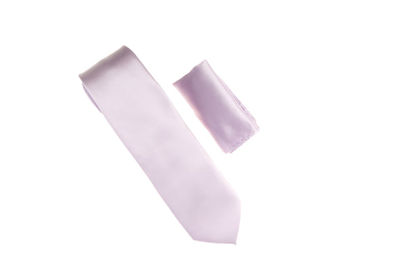 Lavender Satin Finish Silk Necktie with Matching Pocket Square