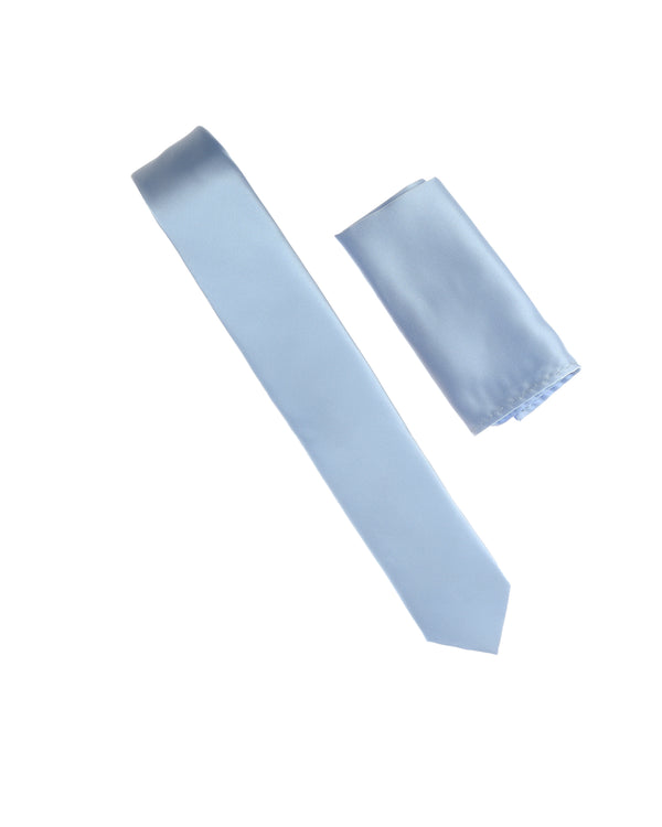 Ice Blue Satin Finish Silk Skinny Necktie with Matching Pocket Square 2.5" Width SSKT-240