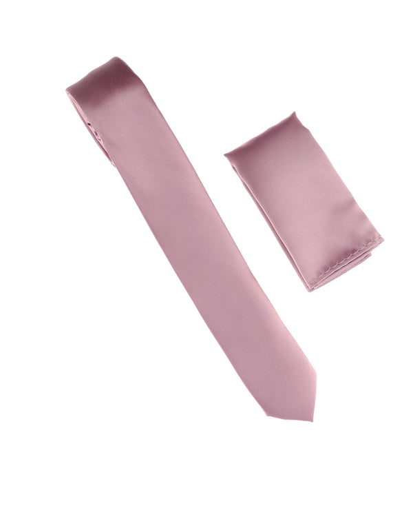 Lavander Haze Satin Finish Silk Skinny Necktie with Matching Pocket Square 2.5" Width SSKT-250