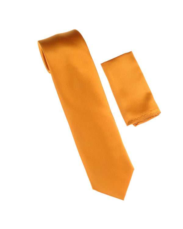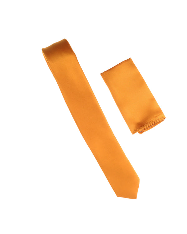 Marigold Satin Finish Silk Skinny Necktie with Matching Pocket Square 2.5" Width SSKT-239