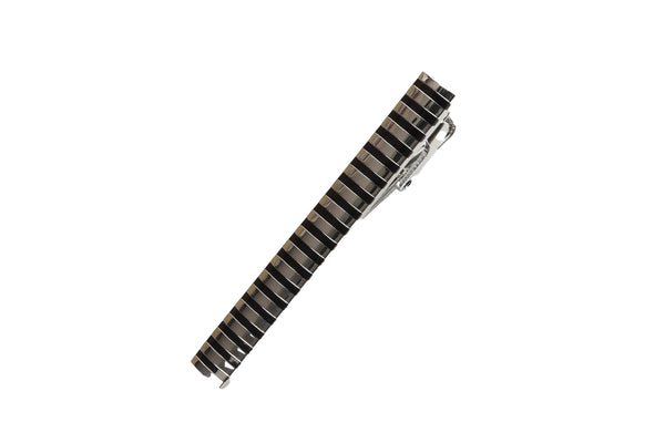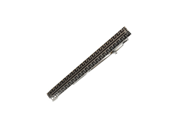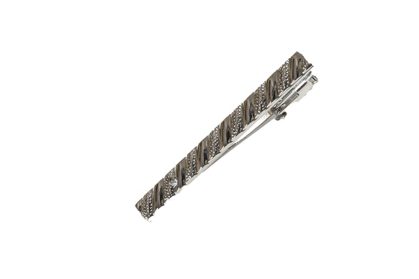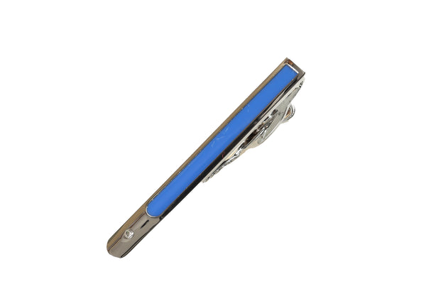 Silver Metal Tie Bar with Blue Accent Design TB031