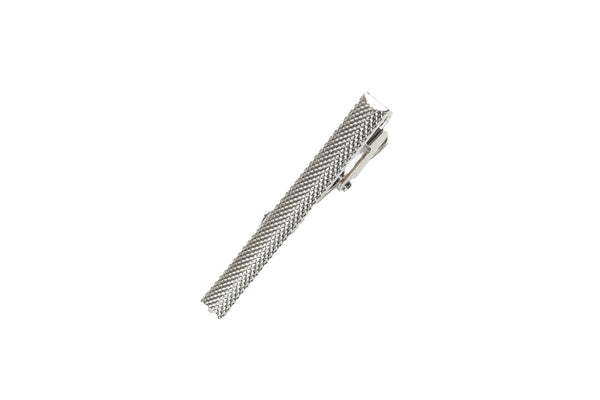 Silver Micro-Grid Necktie with Matching Pocket Square