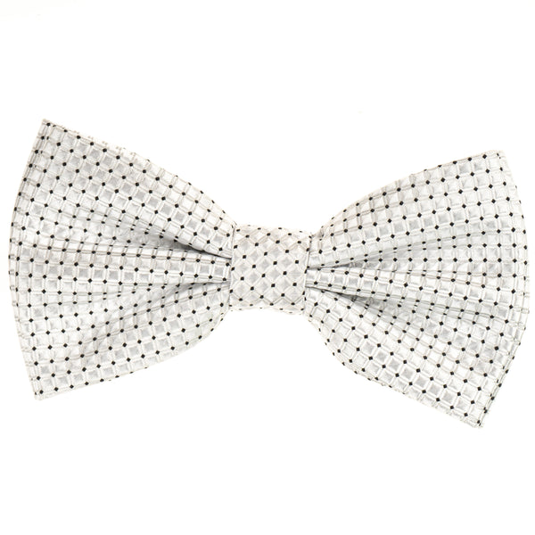 Silver Micro-Grid Pre-Tied Bow tie with Matching Pocket Square