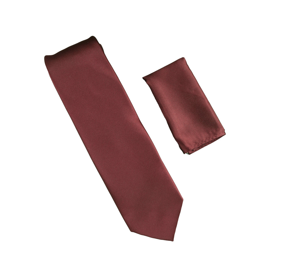 Burgundy Satin Finish Silk Necktie with Matching Pocket Square SWTH-204
