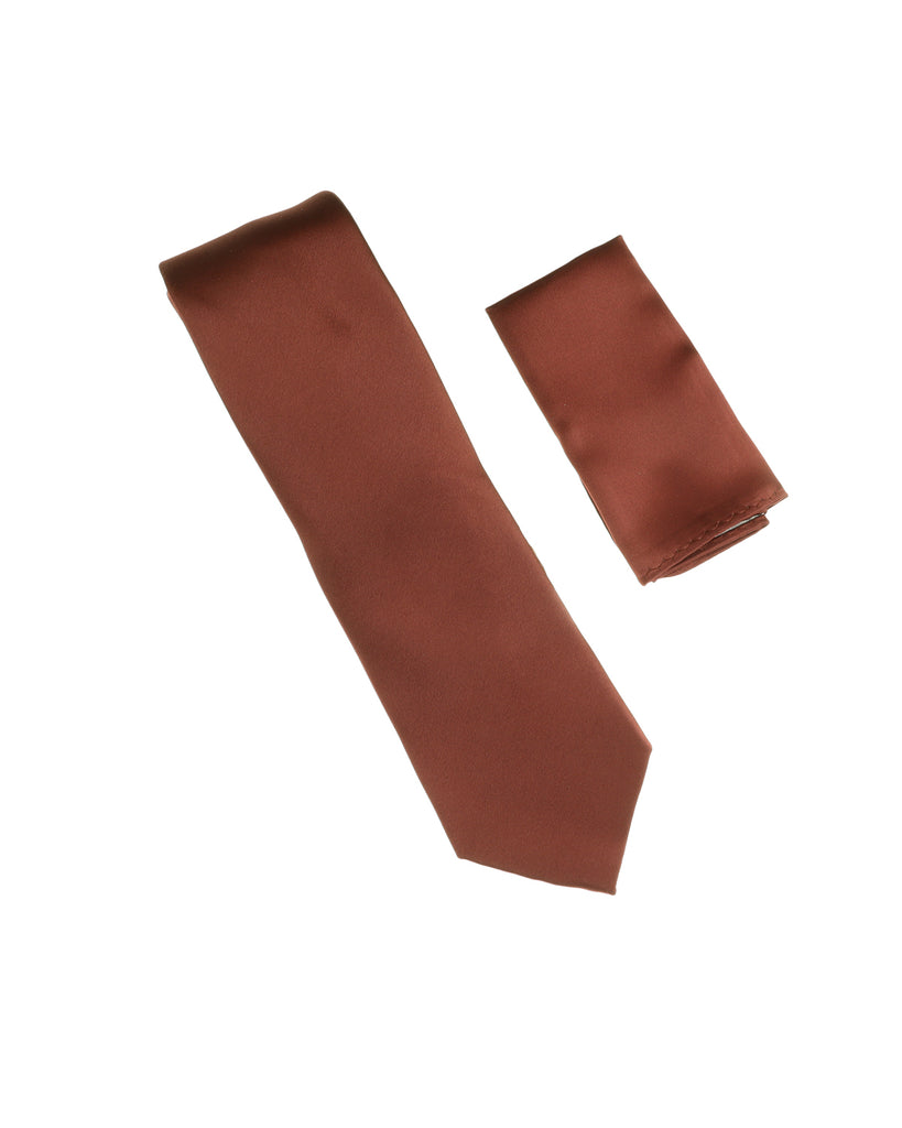 Cinnamon Satin Finish Silk Extra Long Necktie with Matching Pocket Square SWTHXL-235