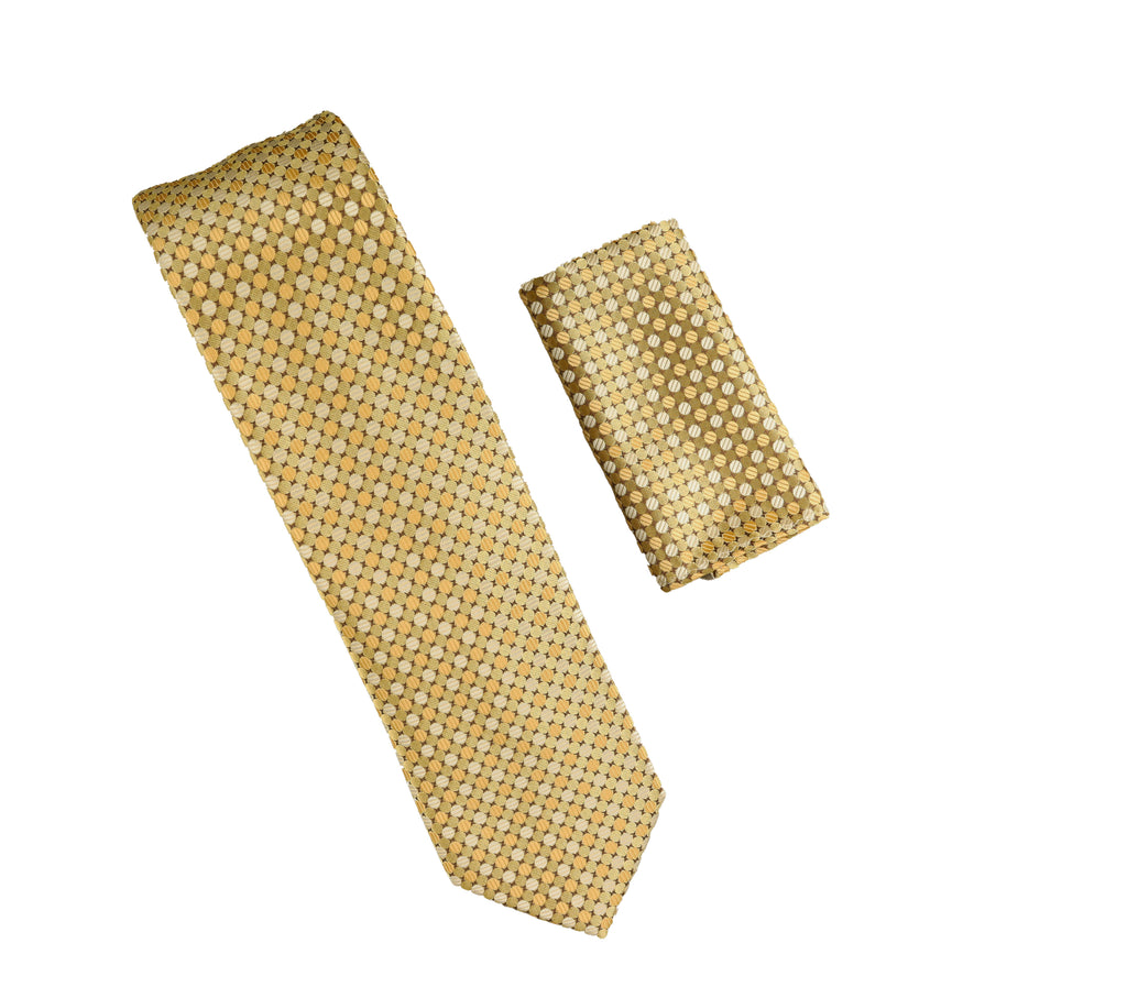 Gold and Tan Designed Tie with Matching Pocket Square WTHXL-805