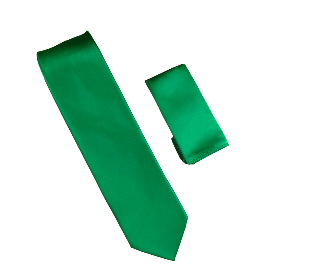 Emerald Green Satin Finish Extra Long Necktie with Matching Pocket Square SWTHXL-242