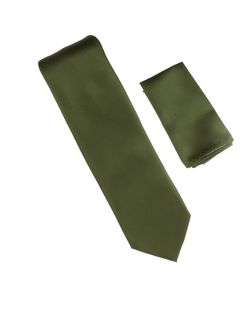 Martini Olive Satin Finish Silk Necktie with Matching Pocket Square SWTH-246
