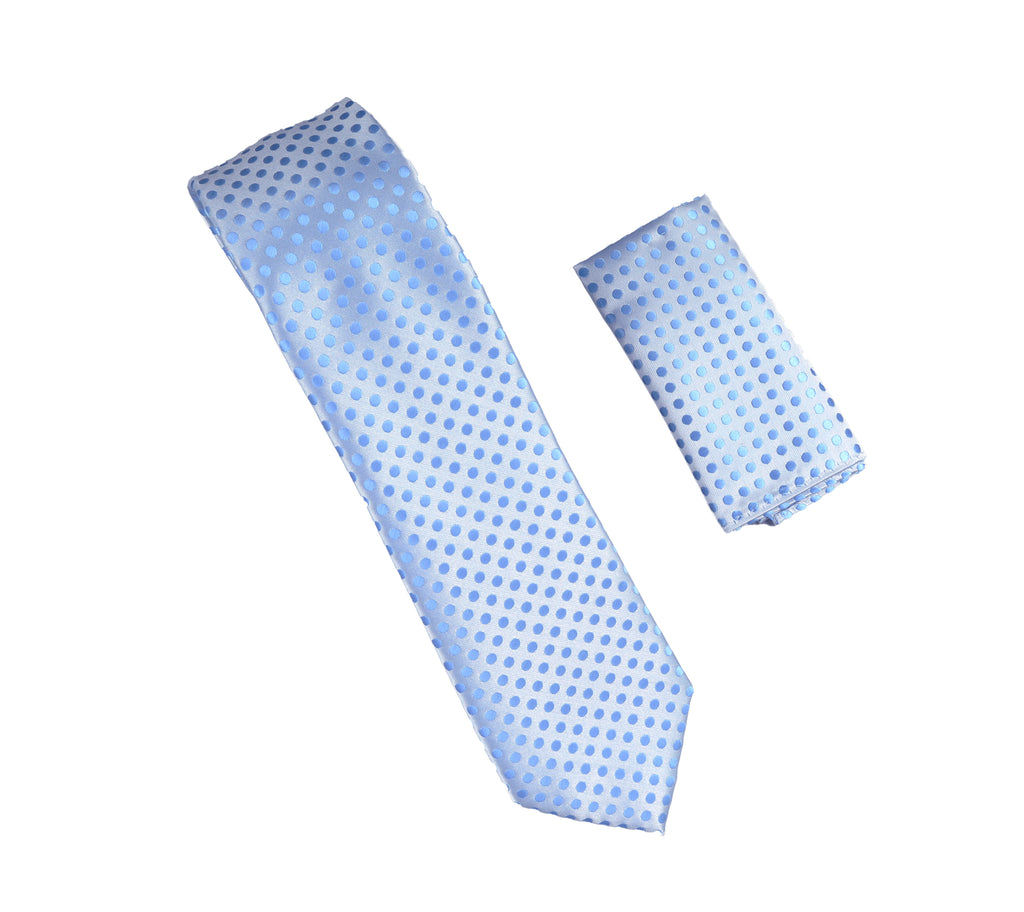 Metallic Light Blue With Light Blue Dotted Extra Long Designed Silk Tie with Matching Pocket Square WTHXL-873