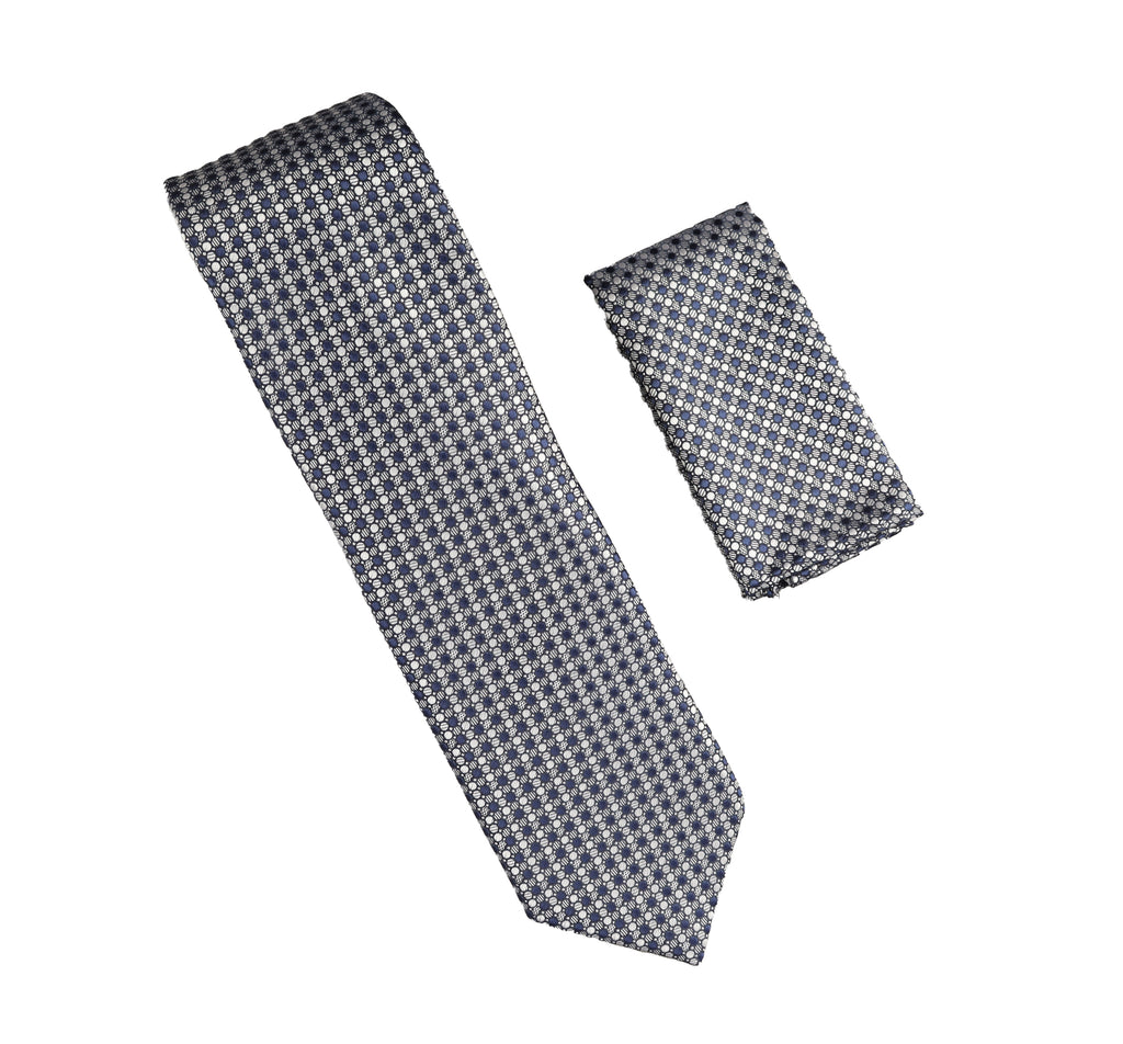 Navy, Grey & Blue Designed Extra Long Necktie Tie with Matching Pocket Square WTHXL-920