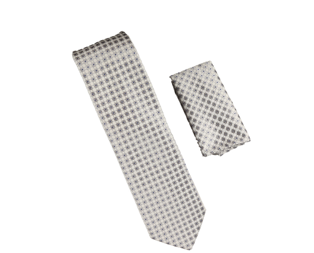 Silver, Light Blue & Navy Designed Extra Long Necktie With Matching Pocket Square WTHXL-905