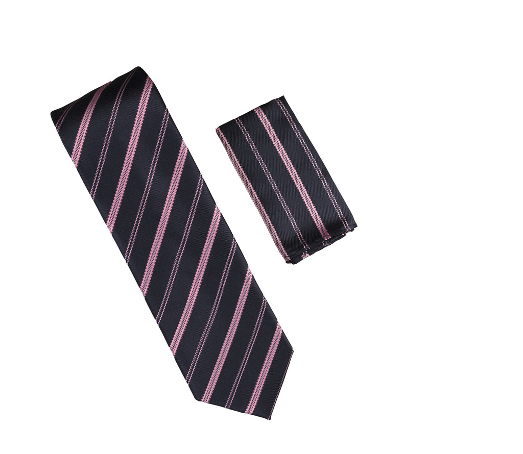 Navy with Pink Striped Designed Extra Long Necktie Tie with Matching Pocket Square WTHXL-972