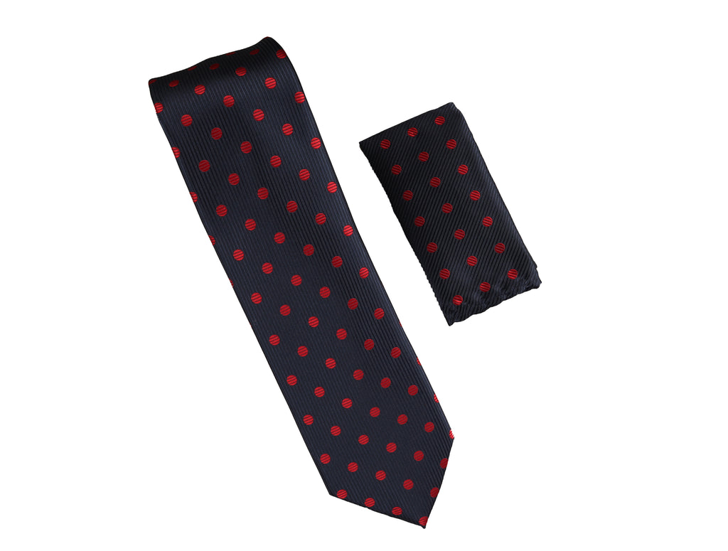 Navy with Red Polka Dot Designed Extra Long Necktie Tie with Matching Pocket Square WTHXL-934