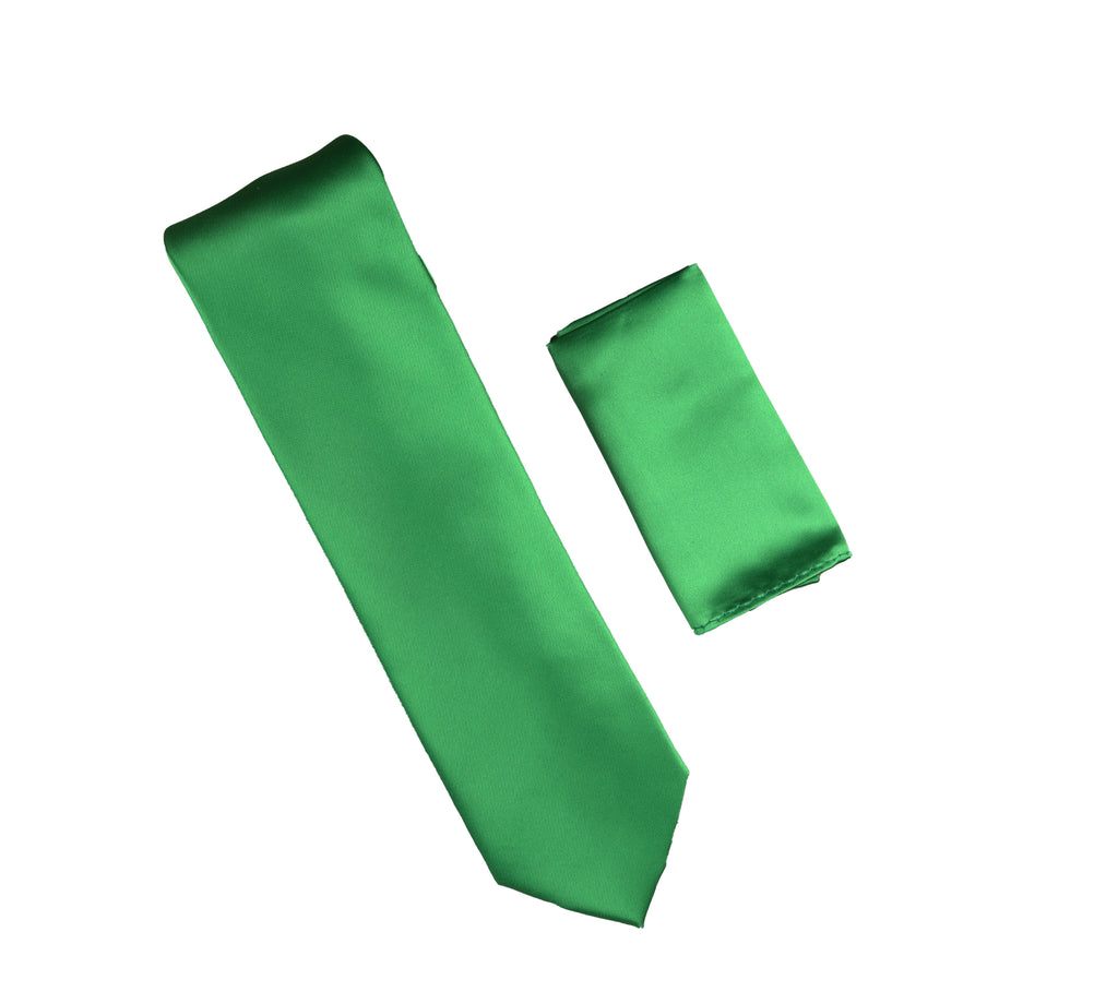 Pine Green Satin Finish Extra Long Necktie with Matching Pocket Square SWTHXL-221