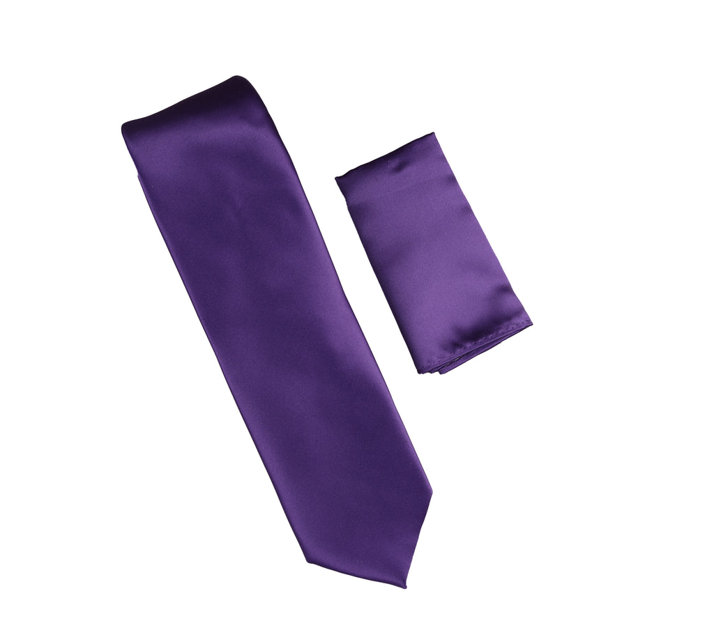 Purple Satin Finish Silk Necktie with Matching Pocket Square SWTH-212