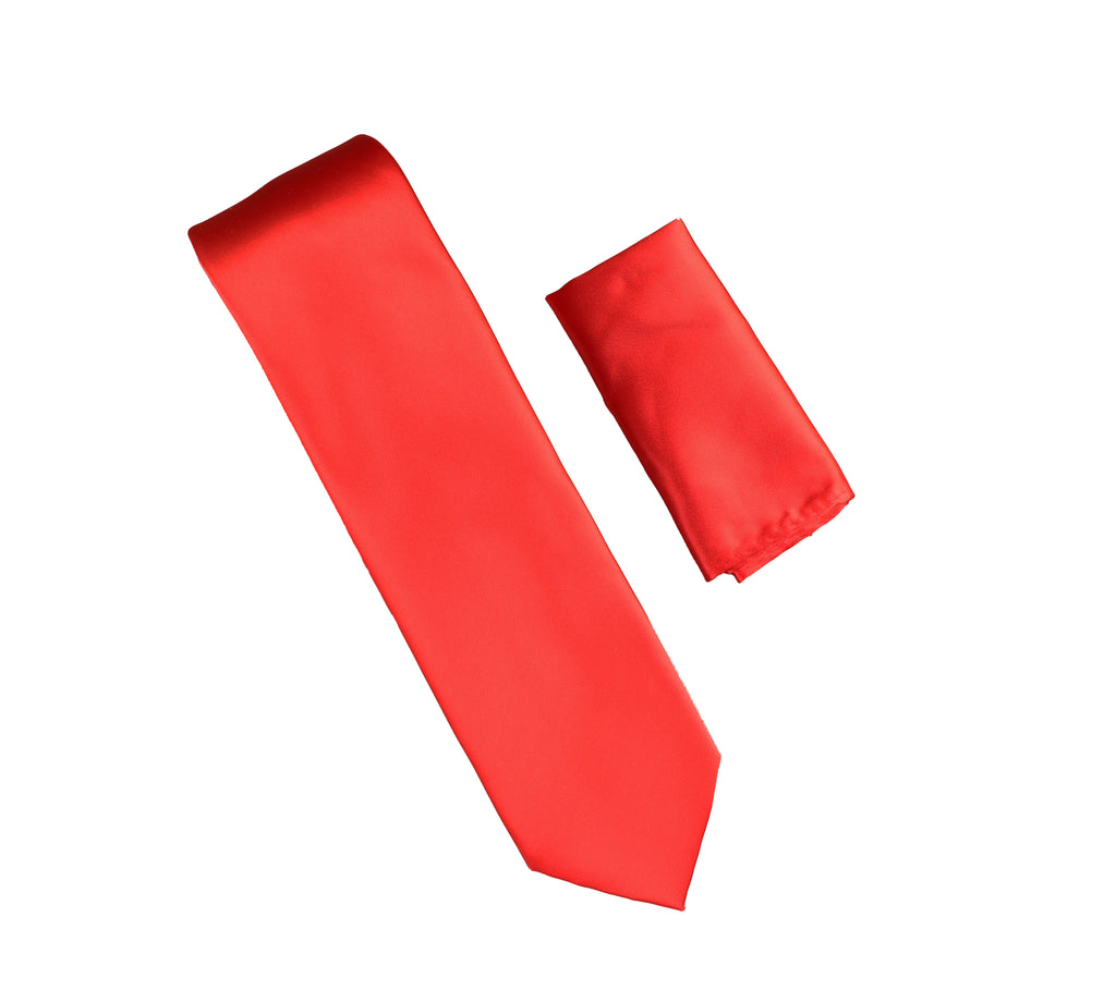 Red Satin Finish Silk Extra Long Necktie with Matching Pocket Square SWTHXL-202