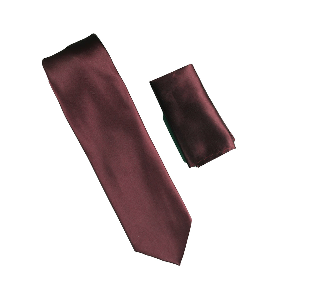 Wine Satin Finish Silk Necktie with Matching Pocket Square SWTH-238