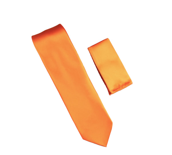 Orange Satin Finish Extra Long Necktie with Matching Pocket Square SWTHXL-219