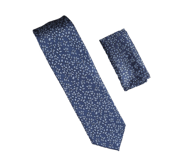 Navy with Blue Petals Designed Extra Long Necktie Tie with Matching Pocket Square WTHXL-945