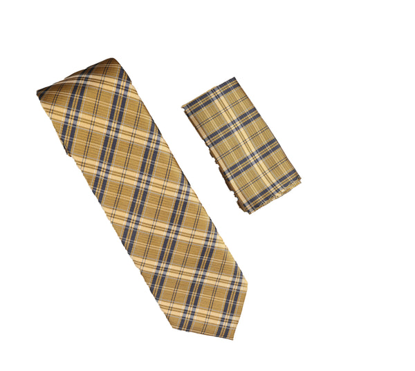 Camo Gold with Navy and Mini Silver Striped Designed Extra Long Necktie Tie with Matching Pocket Square WTHXL-948