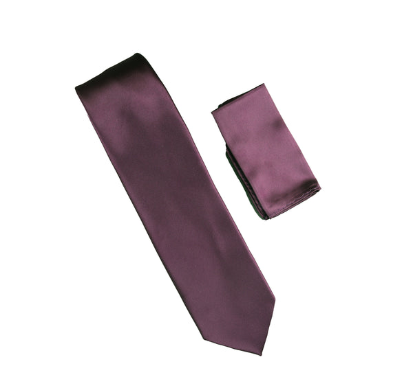 Sangria Satin Finish Silk Necktie with Matching Pocket Square SWTH-249