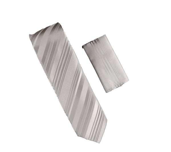 Grey and Silver Striped Designed Tie With Matching Pocket Square WTHXL-824