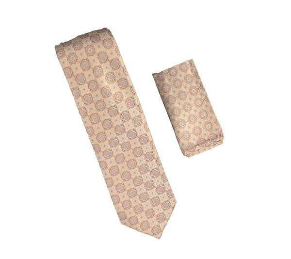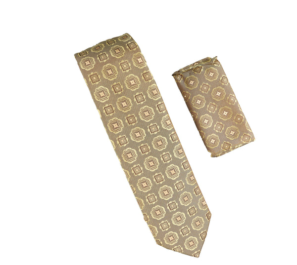 Bronze, Gold and Light Tan Designed Extra Long Necktie with Matching Pocket Square WTHXL-832