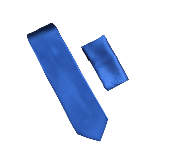 Corded Weave Solid Royal Blue Skinny Tie With A White Pocket Square With Royal Blue Colored Trim CWSKT-144A