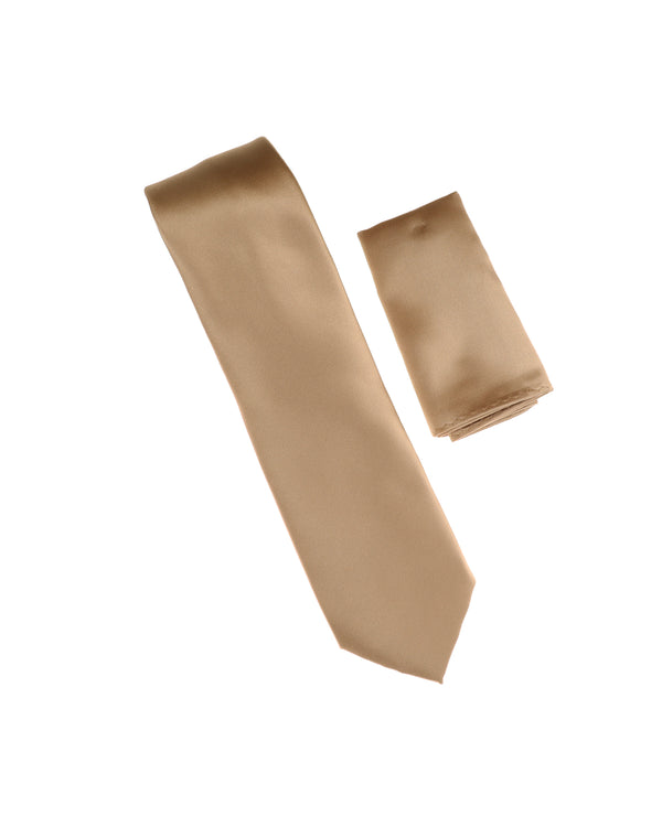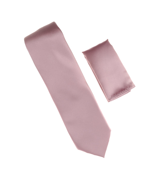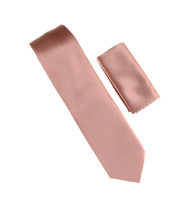 Rose Gold Satin Finish Silk Necktie with Matching Pocket Square SWTH-226