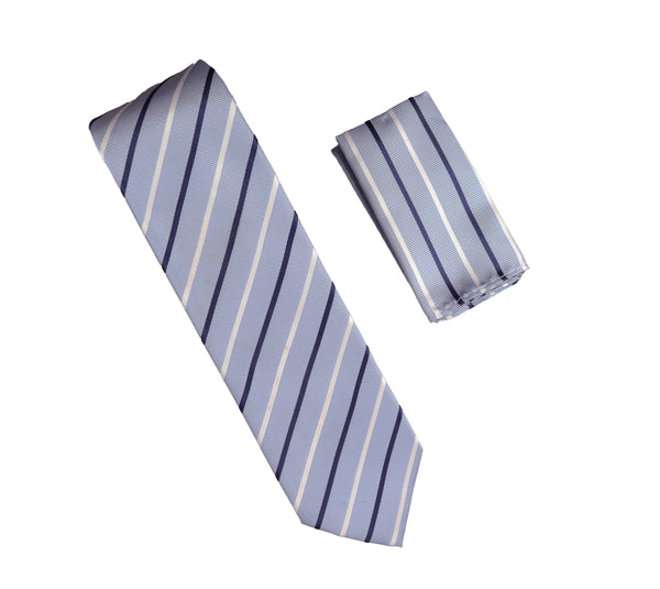 Carolina Blue, Navy and Silver Striped Necktie with Matching Pocket Square WTH-996