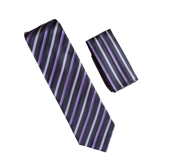 Antonia Label - Purple, Lavender, & Black Striped Necktie with Matching Pocket Square LTD-BB1406