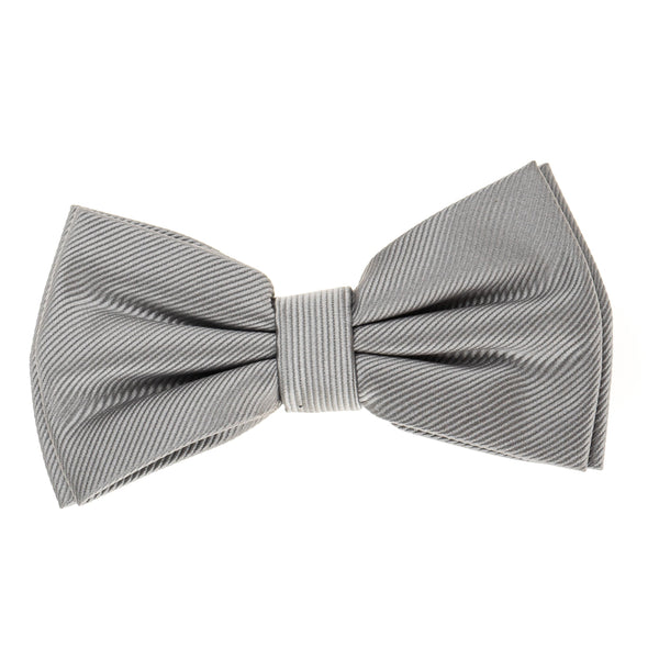Grey Corded Weave Silk Pre-Tied Bow Tie with Matching Pocket Square CWPTBT-138B