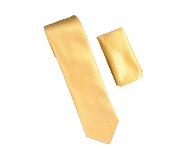 Canary Gold Pin Dot Silk Tie with Matching Pocket Square SWTHPD-07