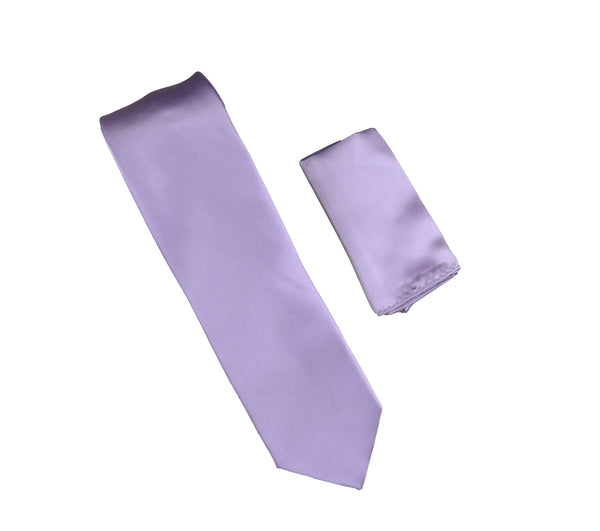 Lavender Satin Finish Extra Long Necktie with Matching Pocket Square SWTHXL-215