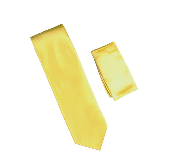 Yellow Satin Finish Extra Long Necktie with Matching Pocket Square SWTHXL-223