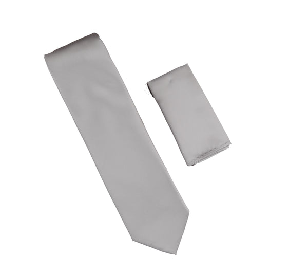 Mystic Silver Satin Finish Extra Long Necktie with Matching Pocket Square SWTHXL-251