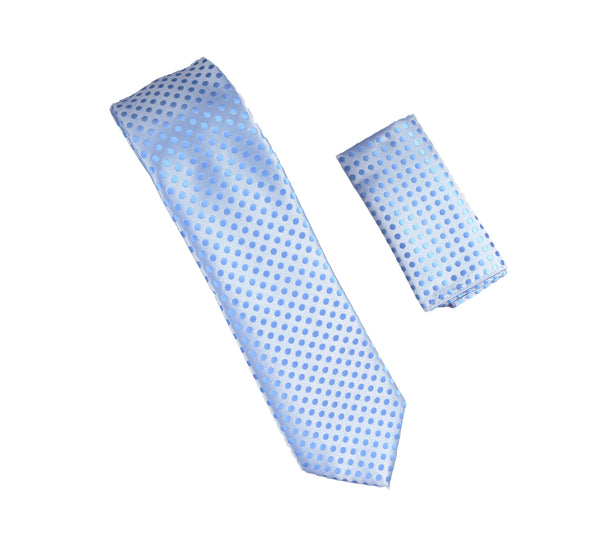 Metallic Light Blue With Light Blue Dotted Extra Long Designed Silk Tie with Matching Pocket Square WTHXL-873