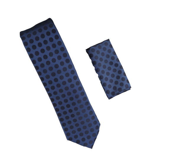 Blue with Navy Polka Dots Extra Long Necktie with Matching Pocket Square WTHXL-976