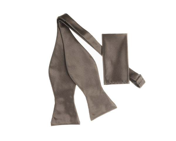 Pin Dot Solid Terra Brown Self-Tie Bow Tie Set With Matching Pocket Square PDSTBT-42A