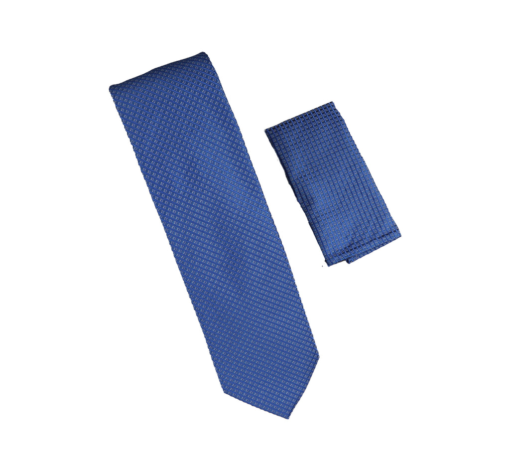 Royal Blue and Silver Designed Necktie with Matching Pocket Square WTH-A312