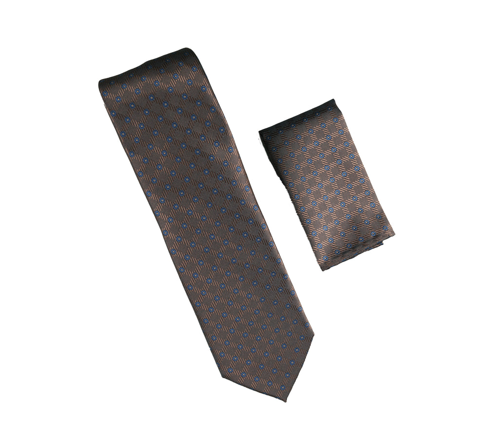 Brown with Navy and Brown Dot Designed Necktie with Matching Pocket Square WTH-A319