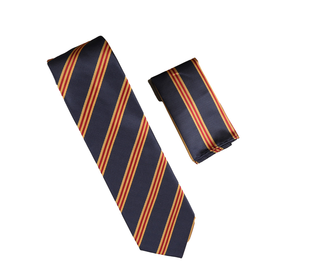 Navy, Burgundy and Gold Stripes Designed Necktie with Matching Pocket Square WTH-A334