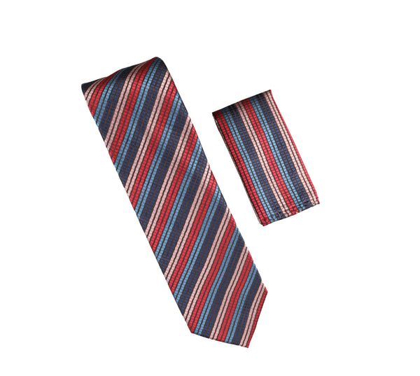 Burgundy, Red, Maroon and Tan Striped Designed Necktie Tie with Matching Pocket Square LTD-929